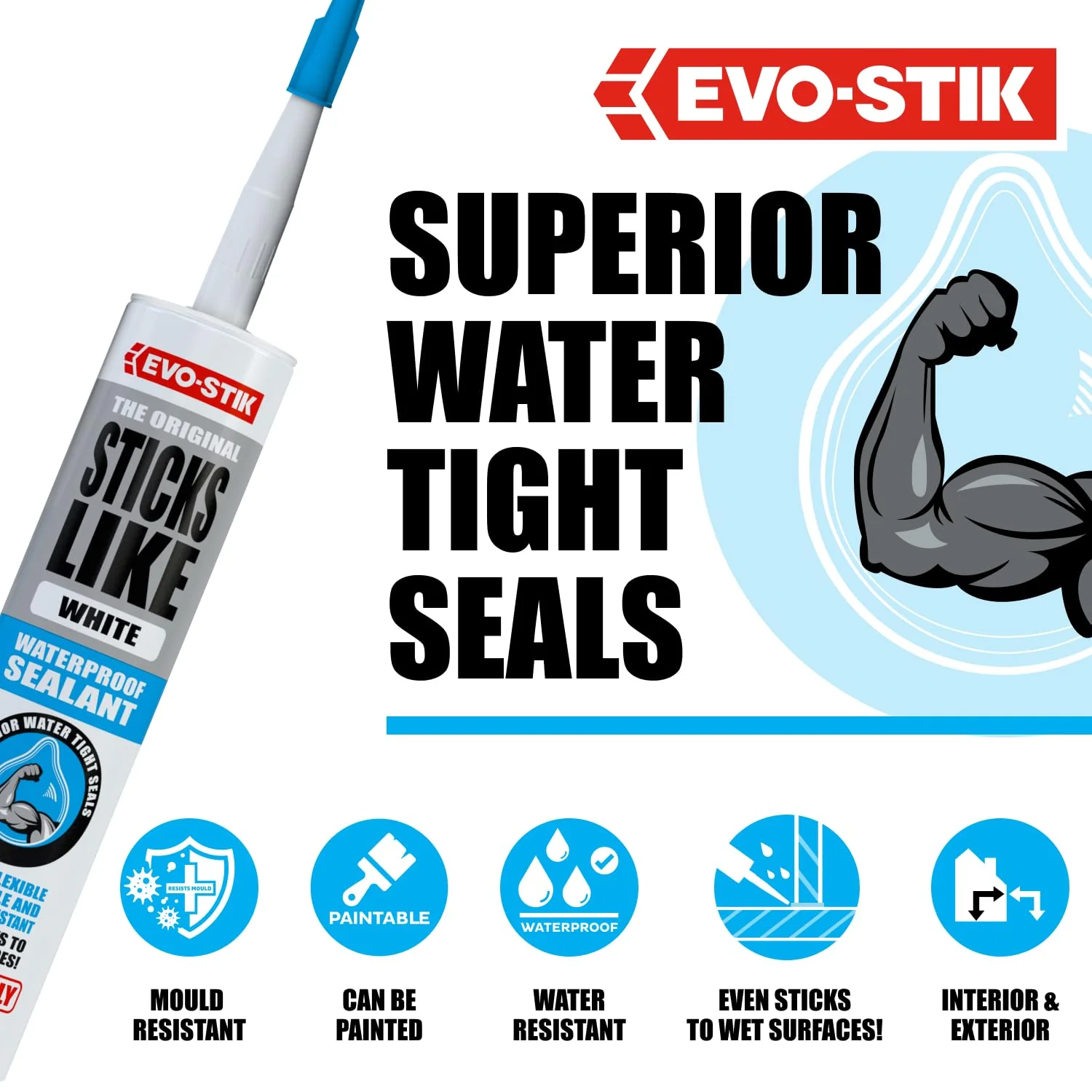 - EVO-STIK Sticks Like waterproof sealant offers ultimate flexibility and seriously strong adhesion, and is mould resistant