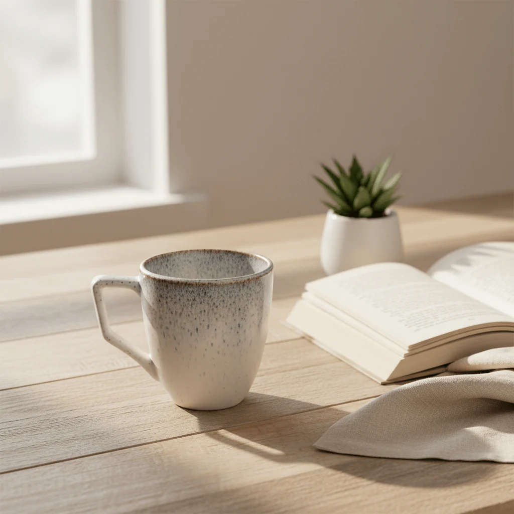 These 400ml tea / coffee mugs in the Whisper porcelain tableware collection feature a reactive glaze design that creates a beautiful blue-grey speckled look, all produced on a pure ivory colour body.