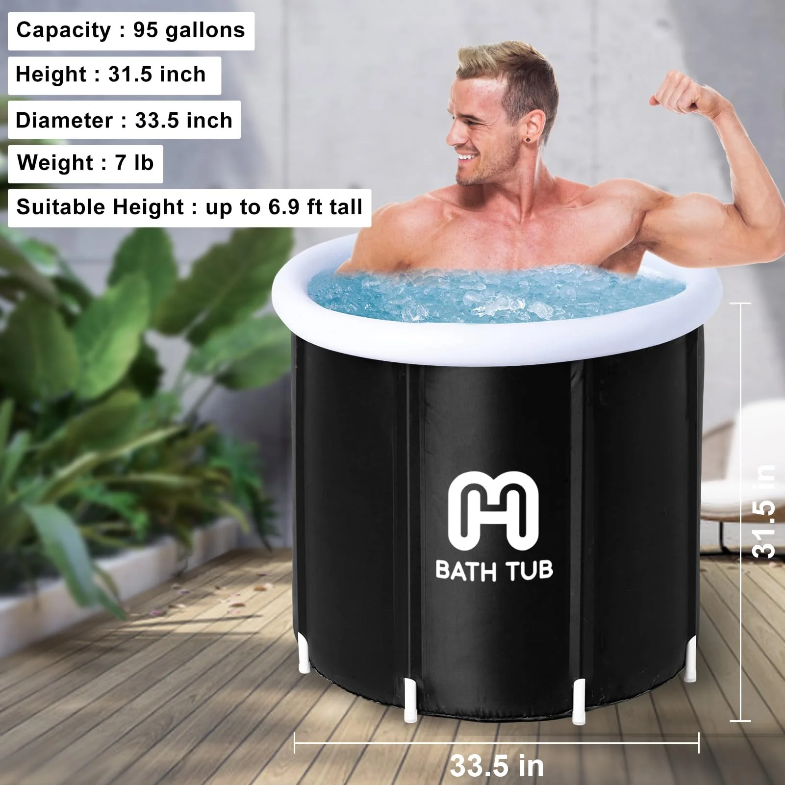 Large Freestanding Ice Bath: At 31.5 x 31.5x 29.5 inches (80cm x 80cm x 75cm), this ice bath tub provides ample space for you to comfortably submerge your entire body and experience the full benefits of cold therapy. Ideal for post-workout recovery, reducing inflammation, and improving circulation, among other benefits.